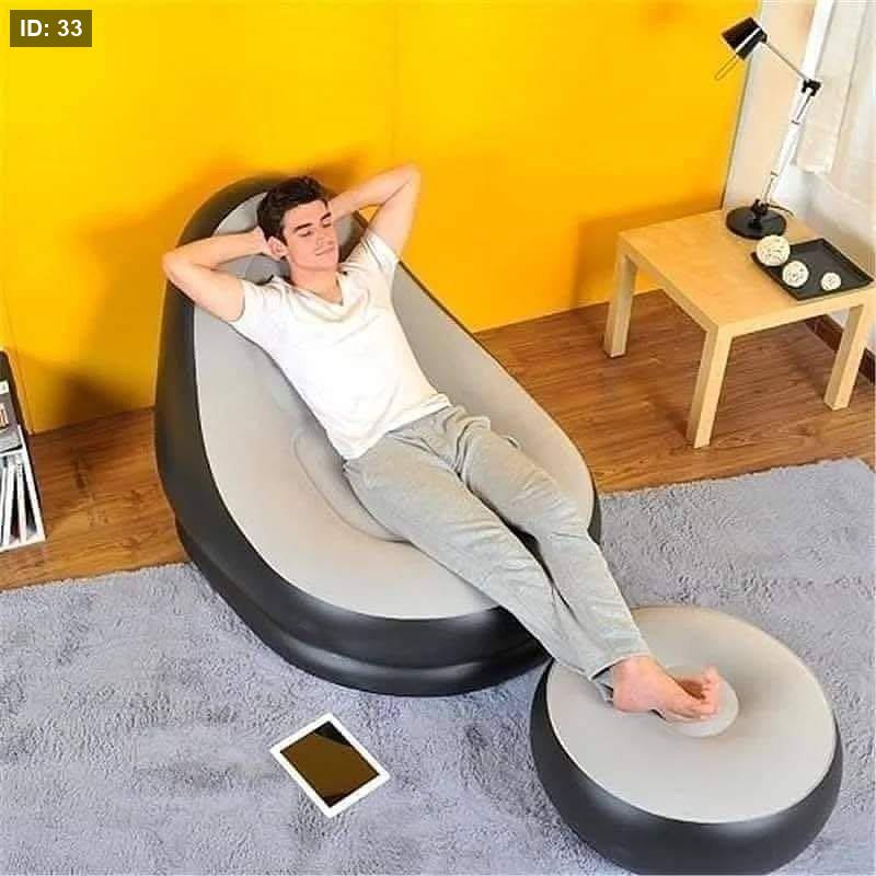 مصنوع من ماده الPVC التي تعطي متانه وقوه للمنتج ، ومغطى بقماش من المخمل الناعم والمريح **سهل التنظيف والنقل والخزن 🤭💛